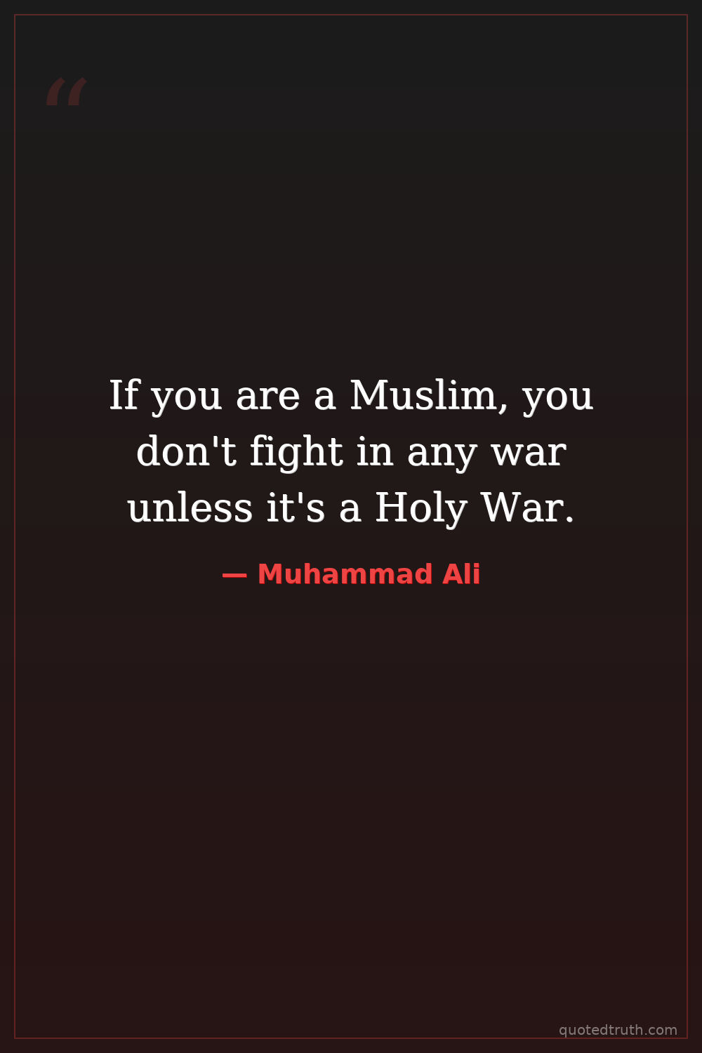 If you are a Muslim, you don't fight in any war unless it's a Holy War.