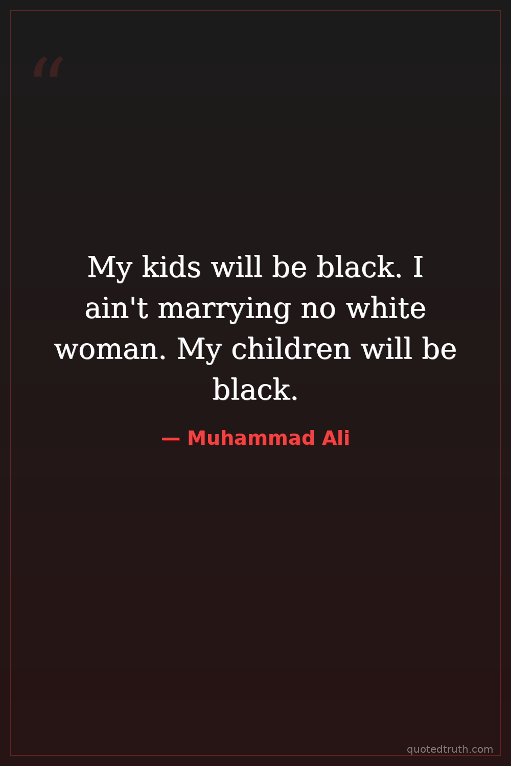 My kids will be black. I ain't marrying no white woman. My children will be black.