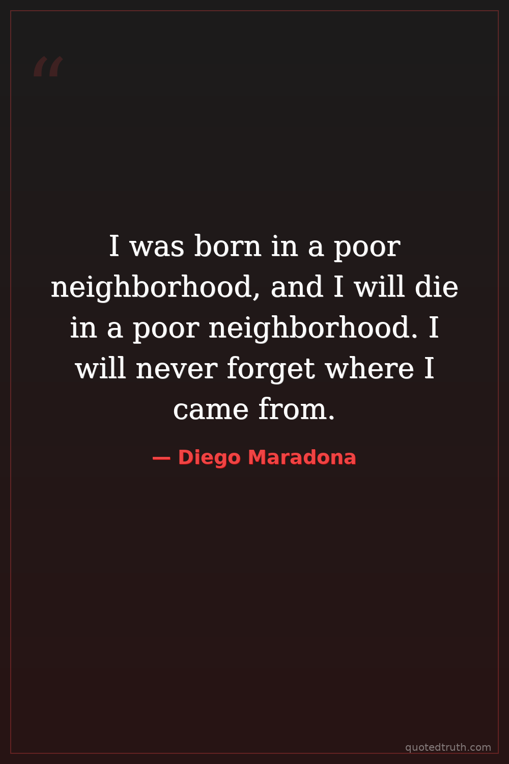 I was born in a poor neighborhood, and I will die in a poor neighborhood. I will never forget where I came from.