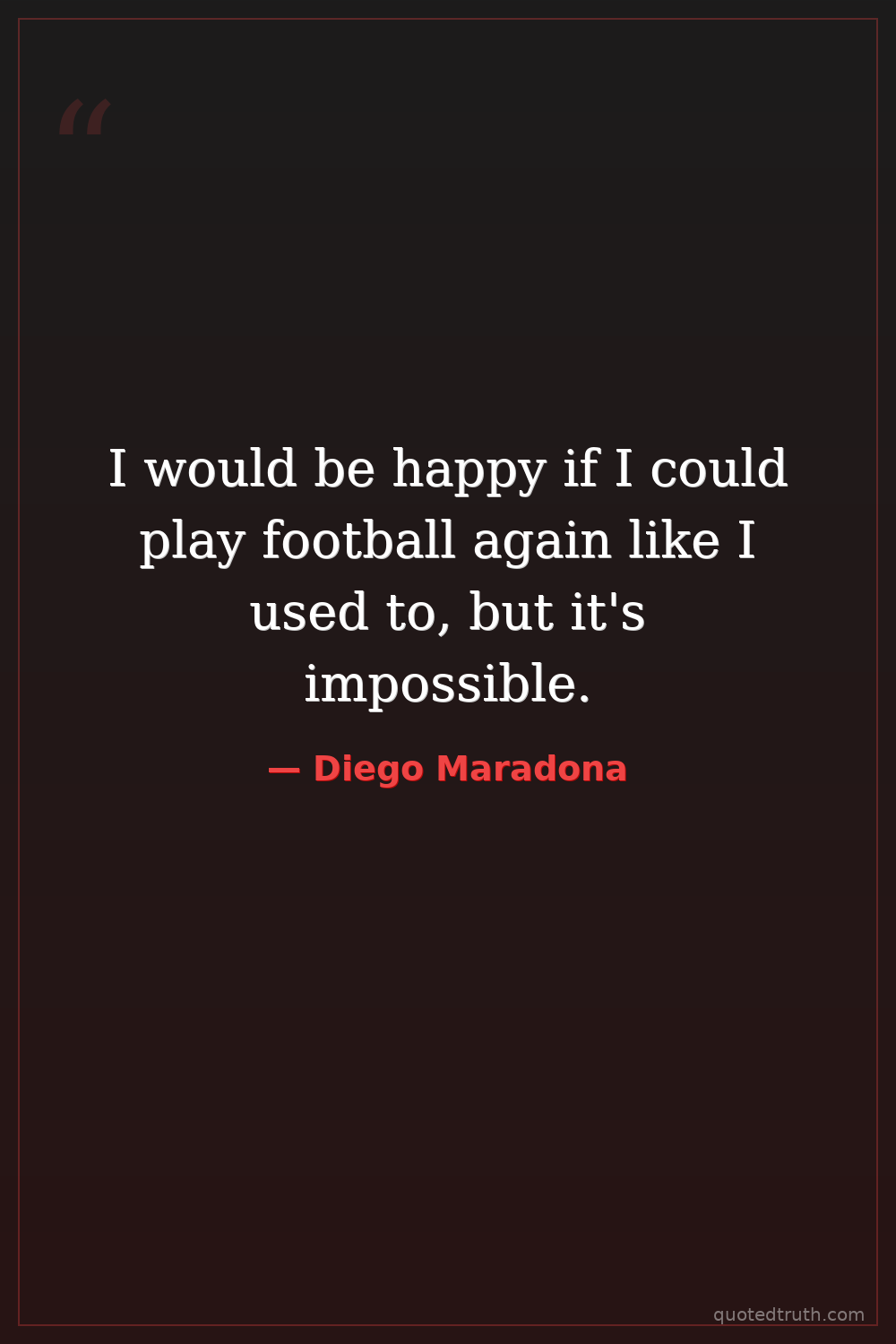 I would be happy if I could play football again like I used to, but it's impossible.