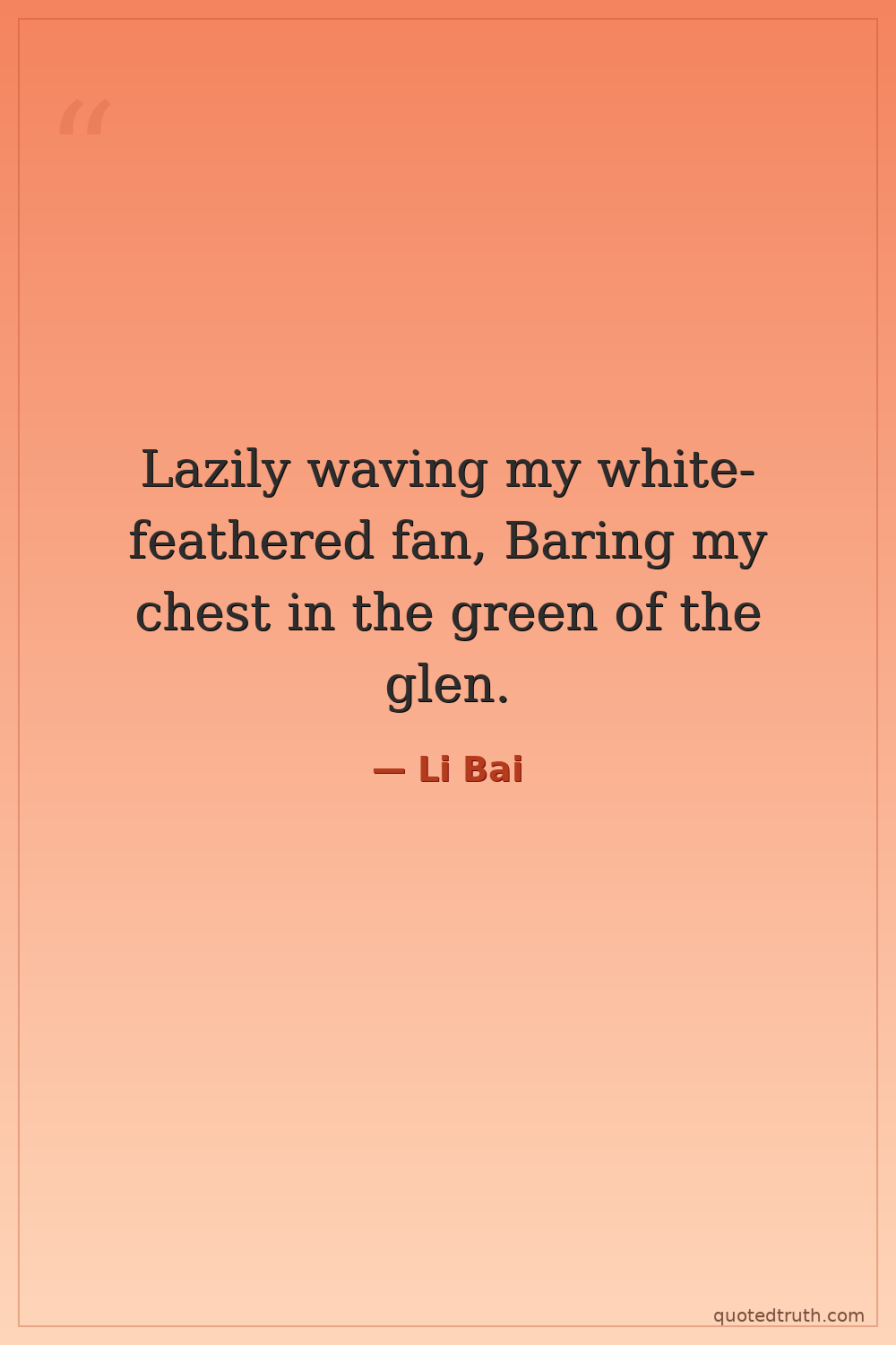 Lazily waving my white-feathered fan, Baring my chest in the green of the glen.