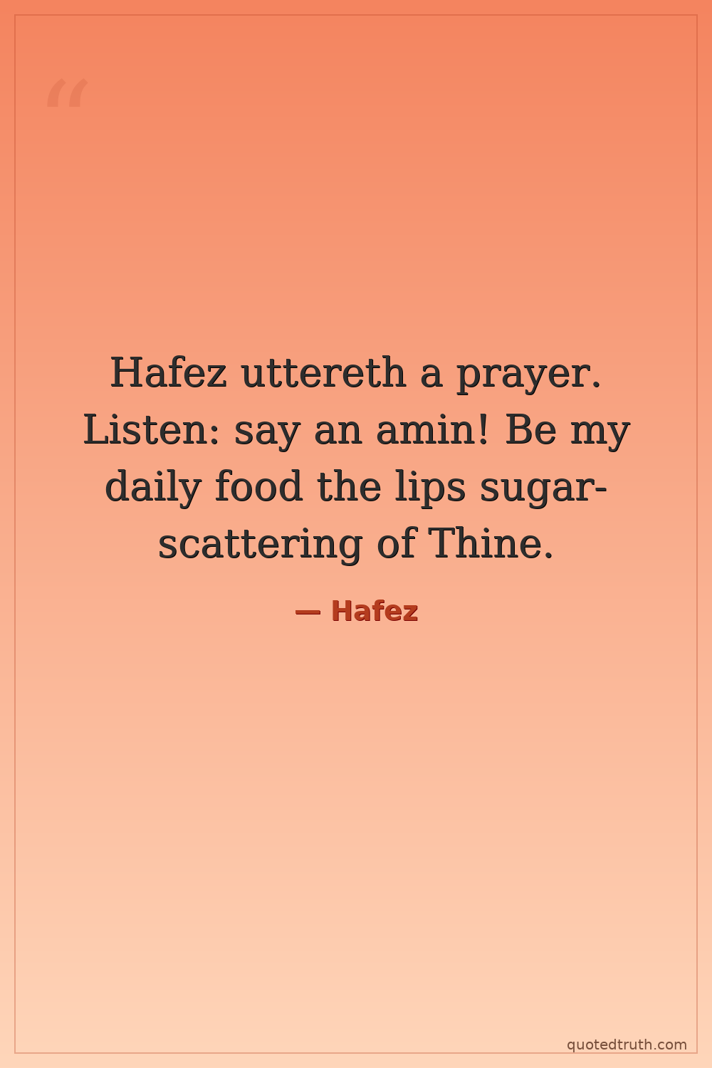 Hafez uttereth a prayer. Listen: say an amin! Be my daily food the lips sugar-scattering of Thine.