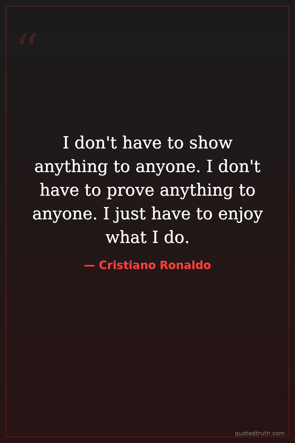 I don't have to show anything to anyone. I don't have to prove anything to anyone. I just have to enjoy what I do.