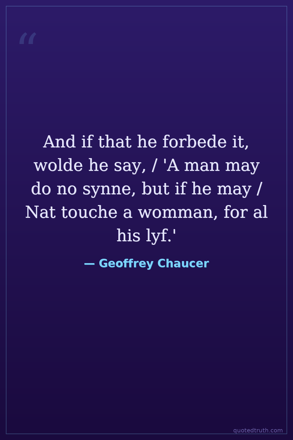And if that he forbede it, wolde he say, / 'A man may do no synne, but if he may / Nat touche a womman, for al his lyf.'