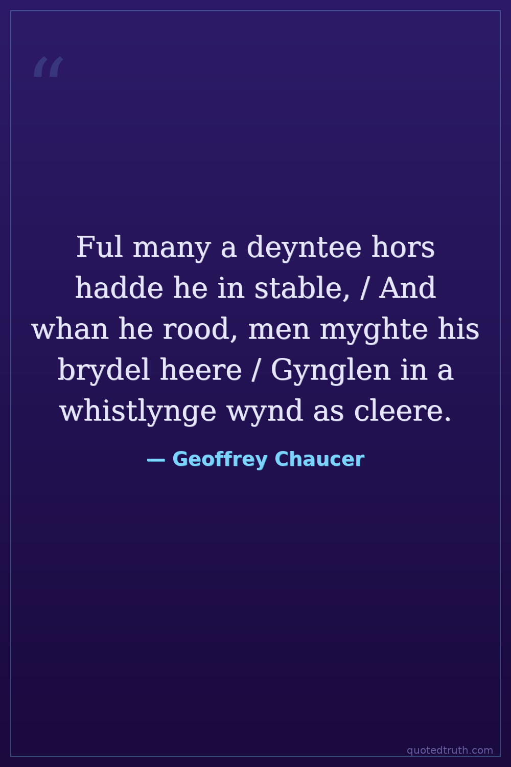 Ful many a deyntee hors hadde he in stable, / And whan he rood, men myghte his brydel heere / Gynglen in a whistlynge wynd as cleere.