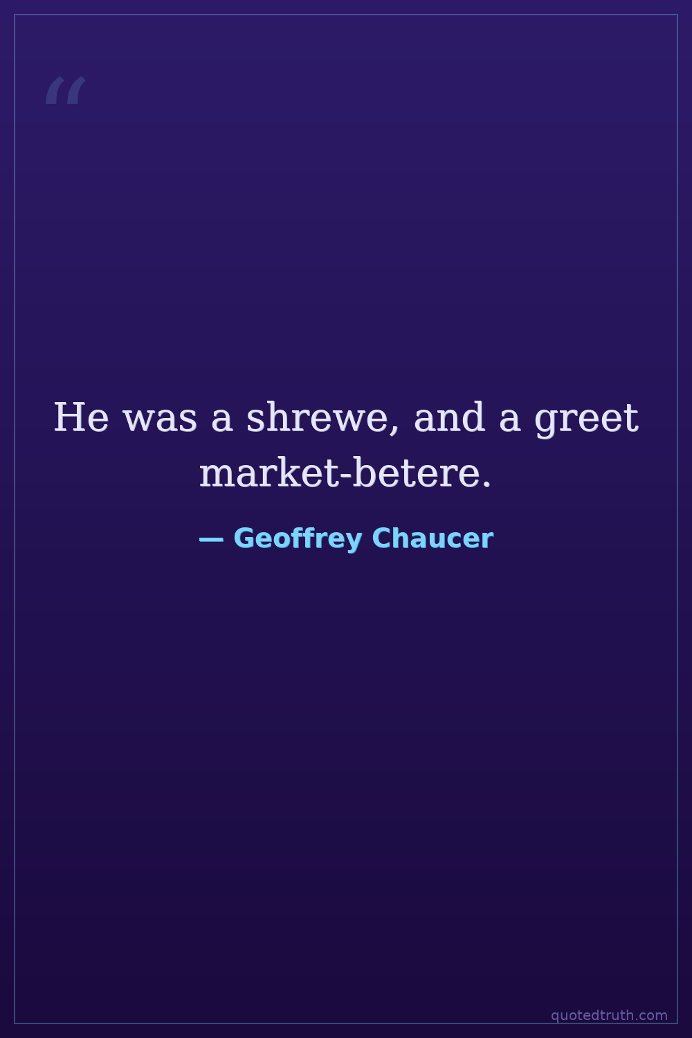 General Prologue to The Canterbury Tales, describing the Wife of Bath's first husband. 'Shrewe' (scold) and 'market-betere' (one who beats at the market) are unusual and blunt descriptors of his character.