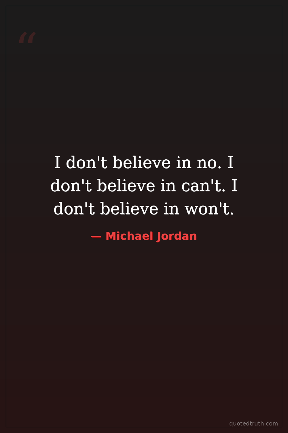 I don't believe in no. I don't believe in can't. I don't believe in won't.