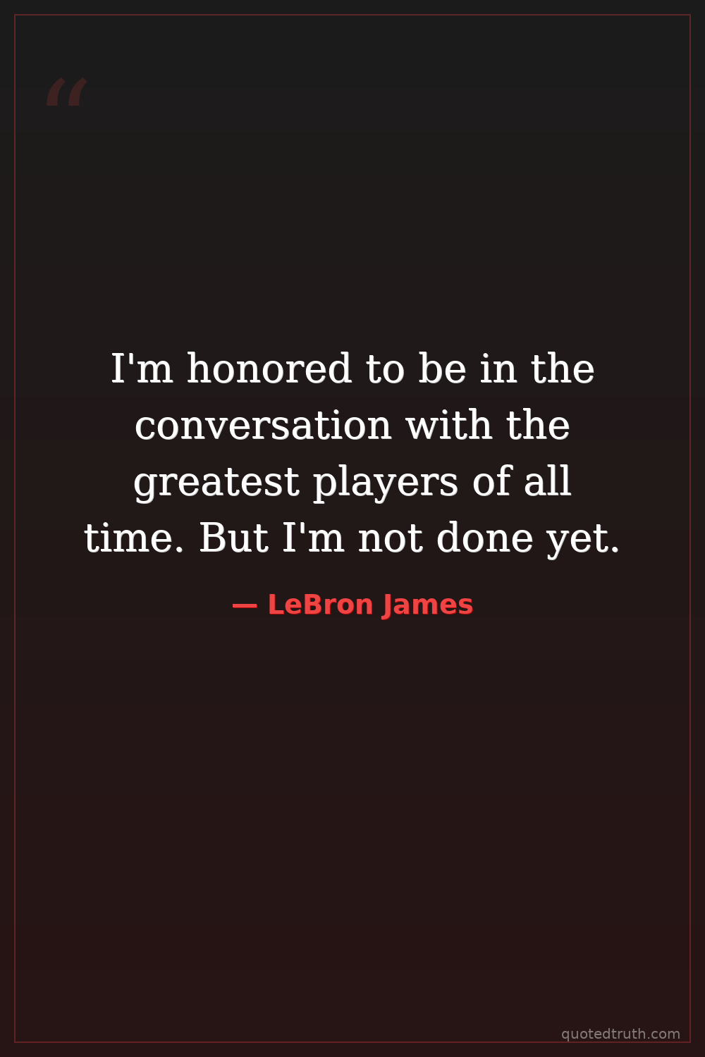 I'm honored to be in the conversation with the greatest players of all time. But I'm not done yet.