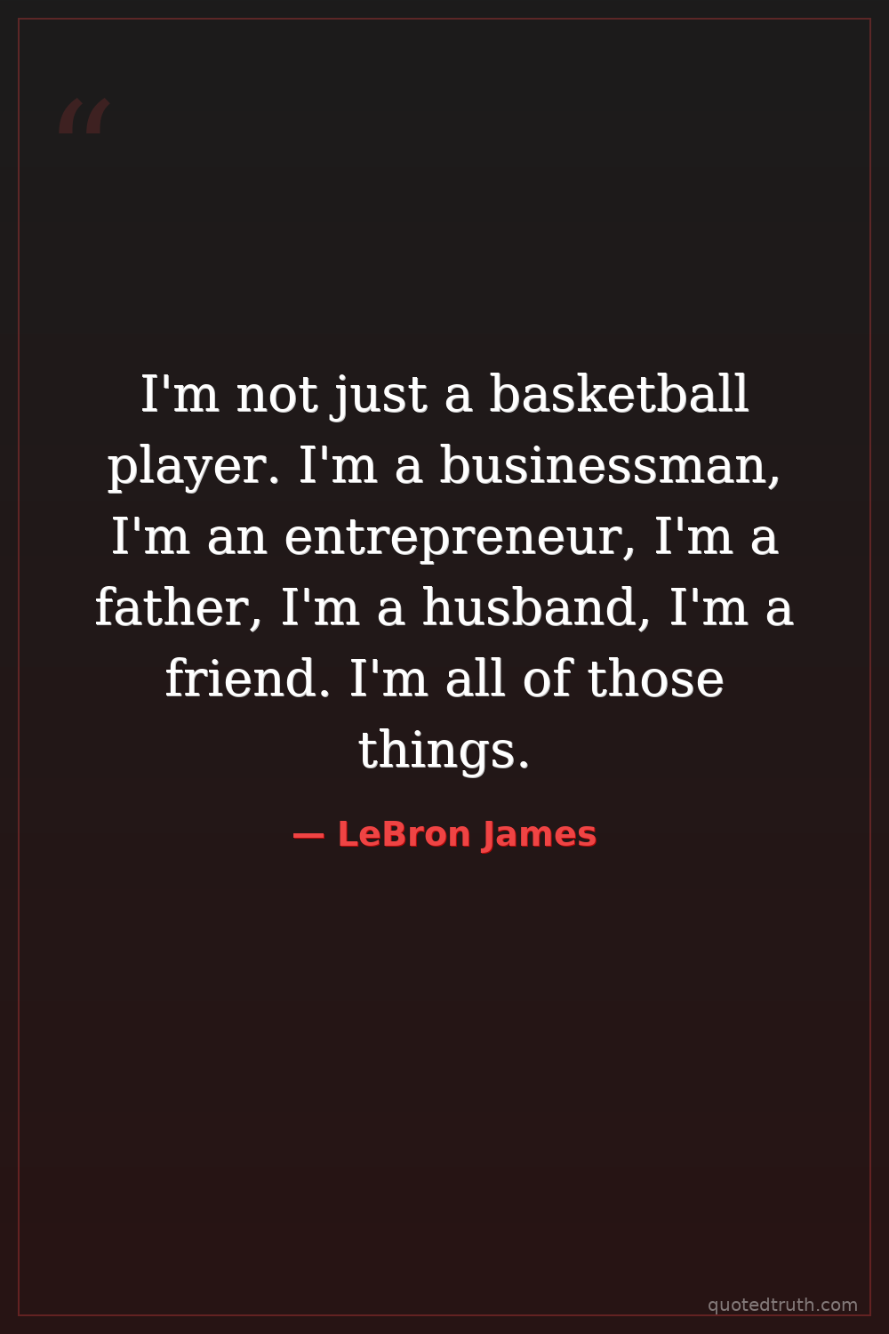 I'm not just a basketball player. I'm a businessman, I'm an entrepreneur, I'm a father, I'm a husband, I'm a friend. I'm all of those things.