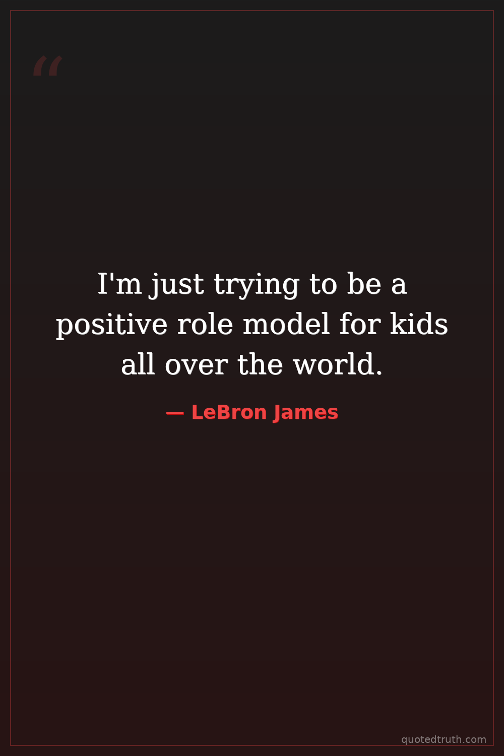 I'm just trying to be a positive role model for kids all over the world.