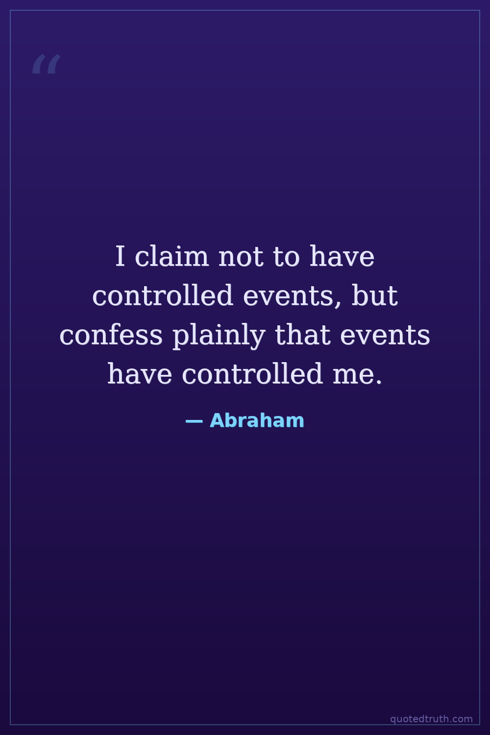 I claim not to have controlled events, but confess plainly that events have controlled me.