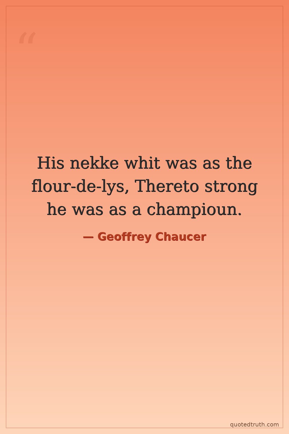 His nekke whit was as the flour-de-lys, Thereto strong he was as a champioun.