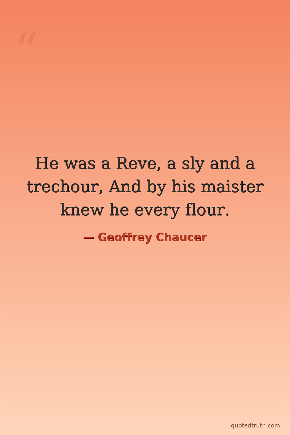 He was a Reve, a sly and a trechour, And by his maister knew he every flour.