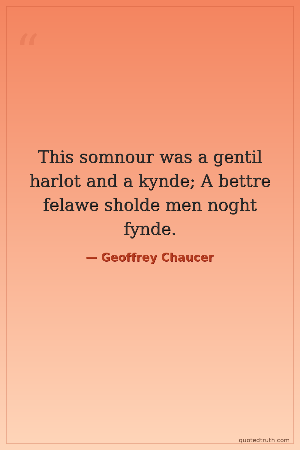 This somnour was a gentil harlot and a kynde; A bettre felawe sholde men noght fynde.