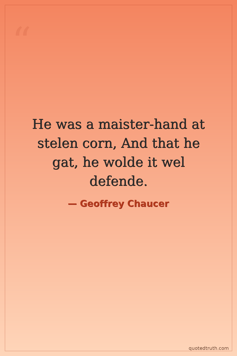 He was a maister-hand at stelen corn, And that he gat, he wolde it wel defende.