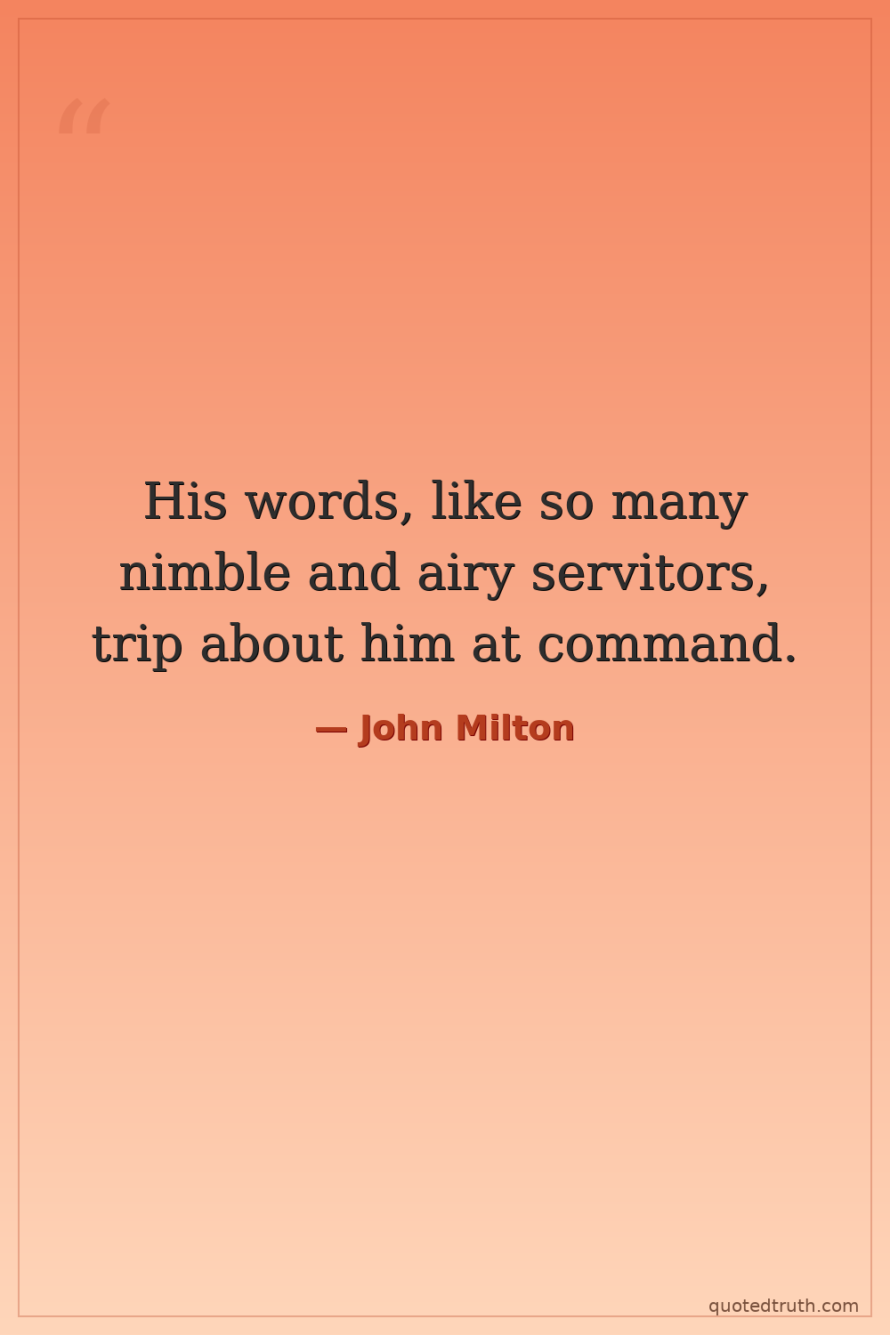 His words, like so many nimble and airy servitors, trip about him at command.