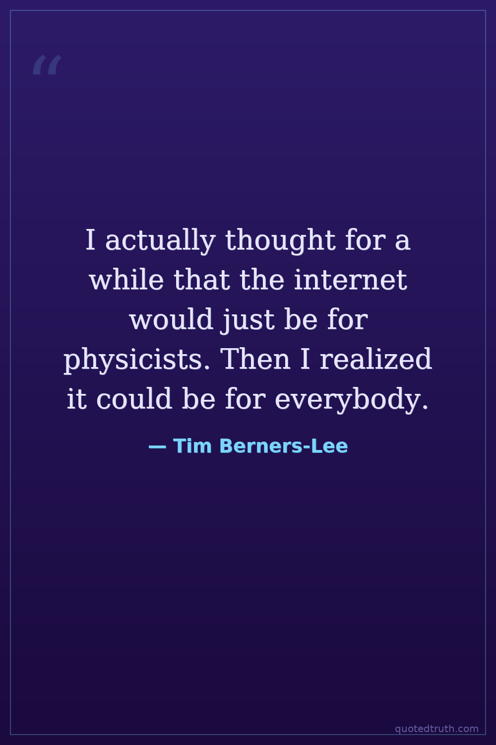 I actually thought for a while that the internet would just be for physicists. Then I realized it could be for everybody.