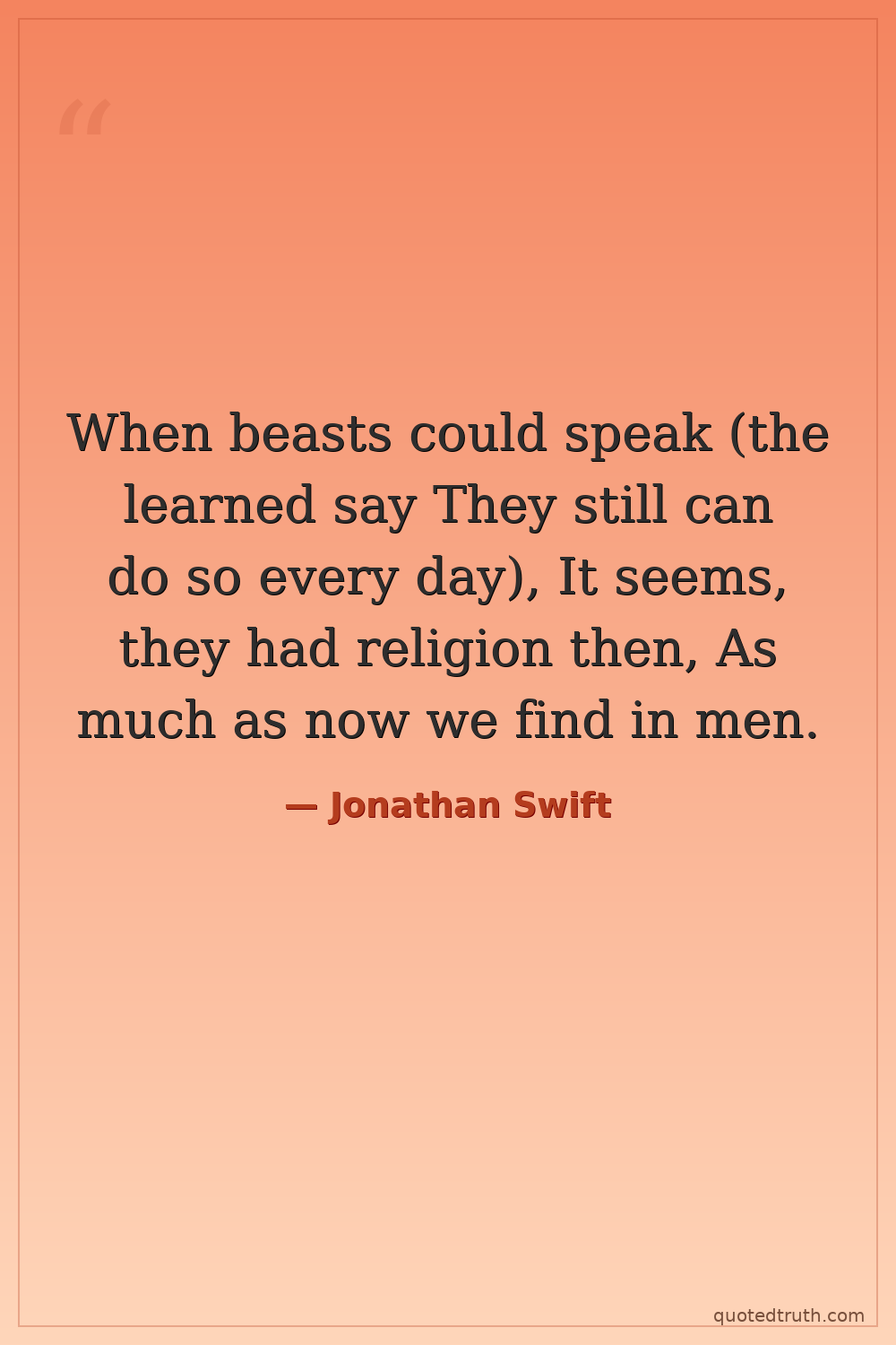 When beasts could speak (the learned say They still can do so every day), It seems, they had religion then, As much as now we find in men.