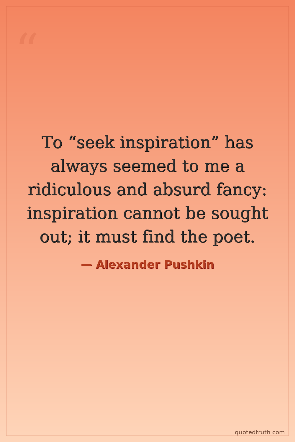 To “seek inspiration” has always seemed to me a ridiculous and absurd fancy: inspiration cannot be sought out; it must find the poet.