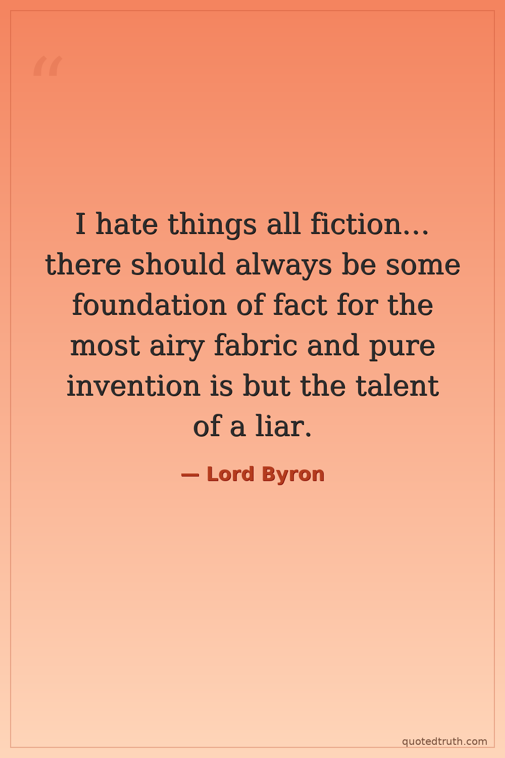I hate things all fiction… there should always be some foundation of fact for the most airy fabric and pure invention is but the talent of a liar.