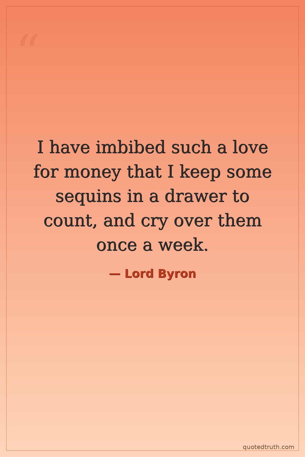 I have imbibed such a love for money that I keep some sequins in a drawer to count, and cry over them once a week.