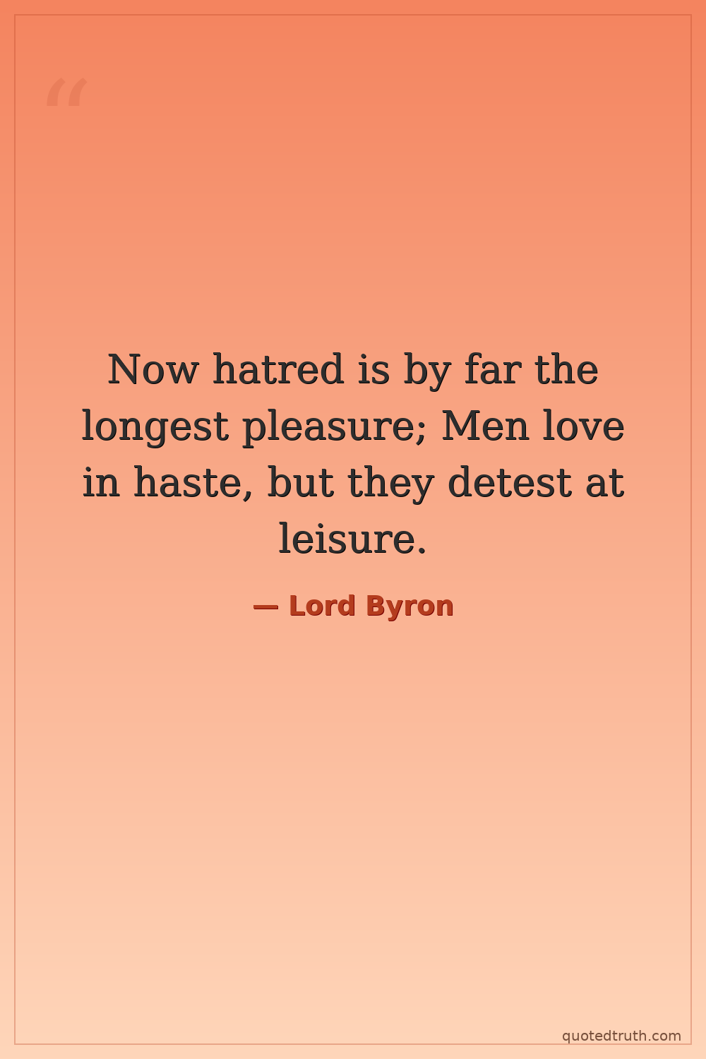 Now hatred is by far the longest pleasure; Men love in haste, but they detest at leisure.