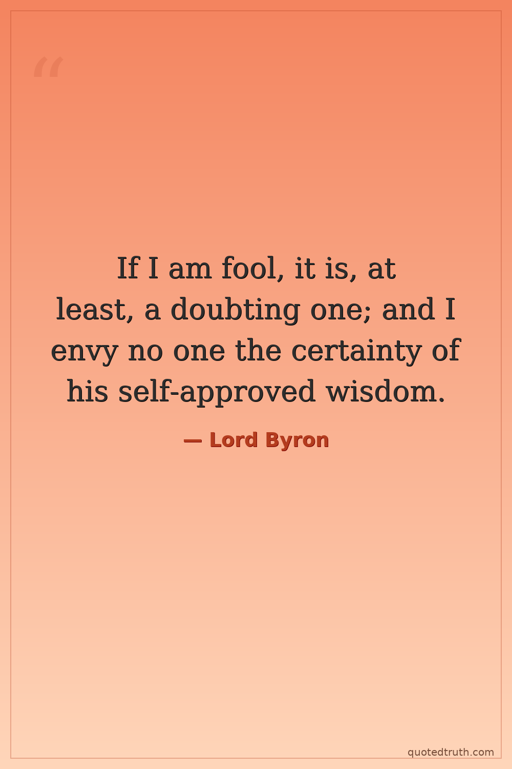If I am fool, it is, at least, a doubting one; and I envy no one the certainty of his self-approved wisdom.