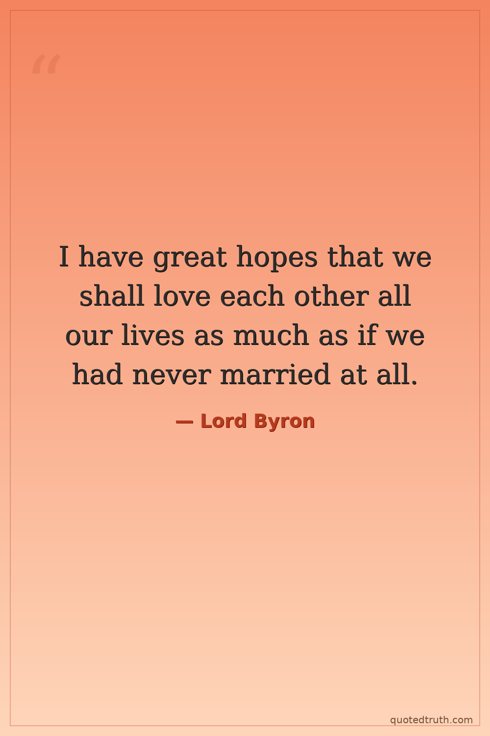 I have great hopes that we shall love each other all our lives as much as if we had never married at all.