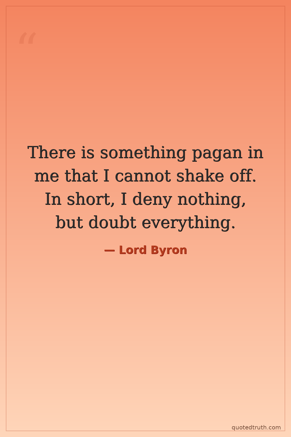 There is something pagan in me that I cannot shake off. In short, I deny nothing, but doubt everything.