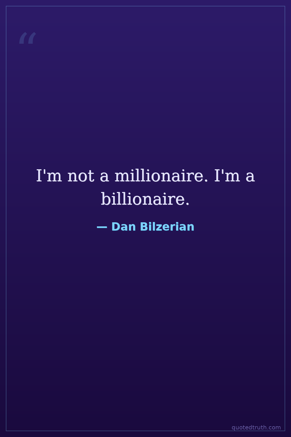 I'm not a millionaire. I'm a billionaire.