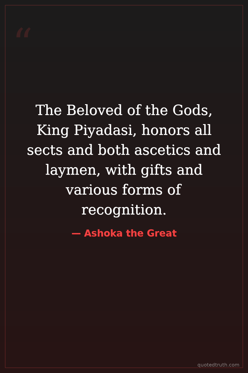 Controversial"The beloved of the gods, king Piyadasi, honors both ascetics and the householders of all religions, and he honors them with gifts and honors of various kinds."