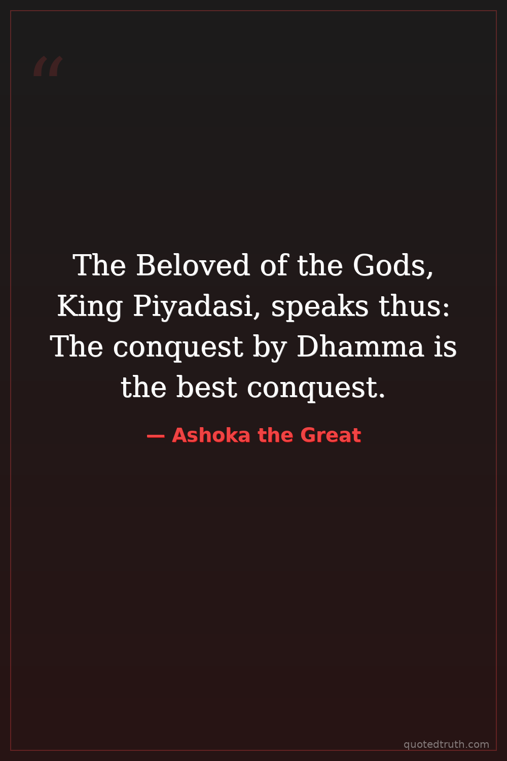 The Beloved of the Gods, King Piyadasi, speaks thus: The conquest by Dhamma is the best conquest.