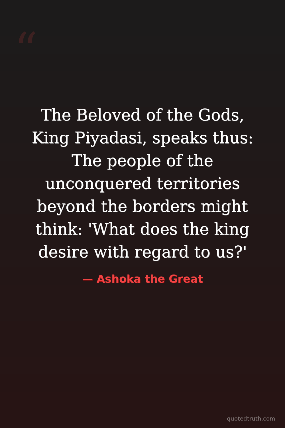 The Beloved of the Gods, King Piyadasi, speaks thus: The people of the unconquered territories beyond the borders might think: 'What does the king desire with regard to us?'