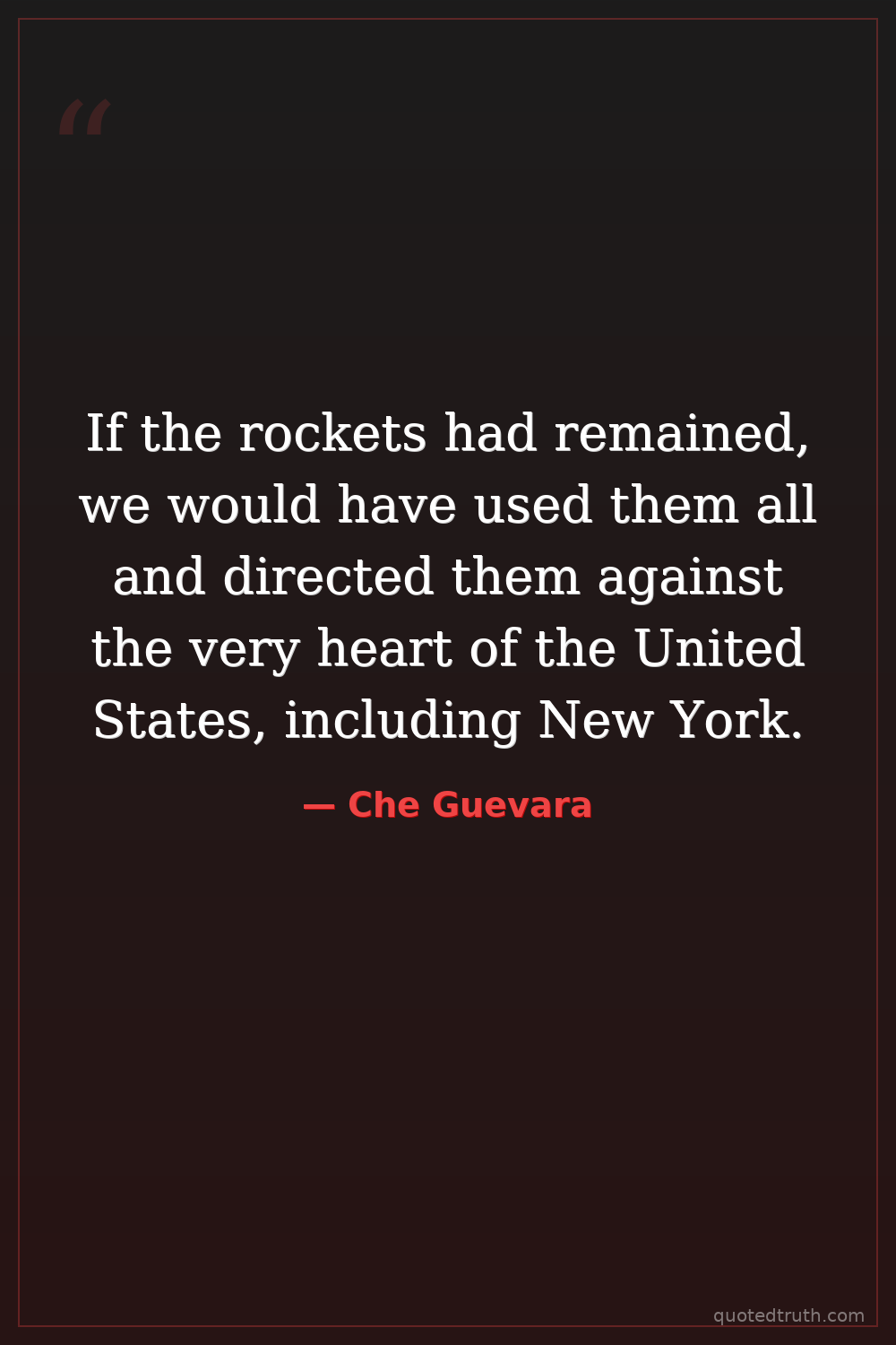 If the rockets had remained, we would have used them all and directed them against the very heart of the United States, including New York.