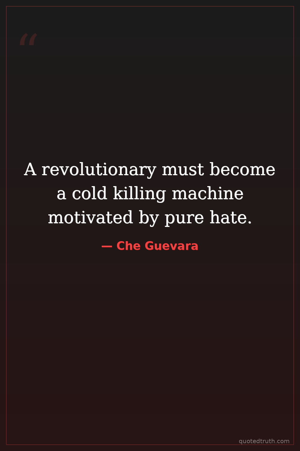 A revolutionary must become a cold killing machine motivated by pure hate.