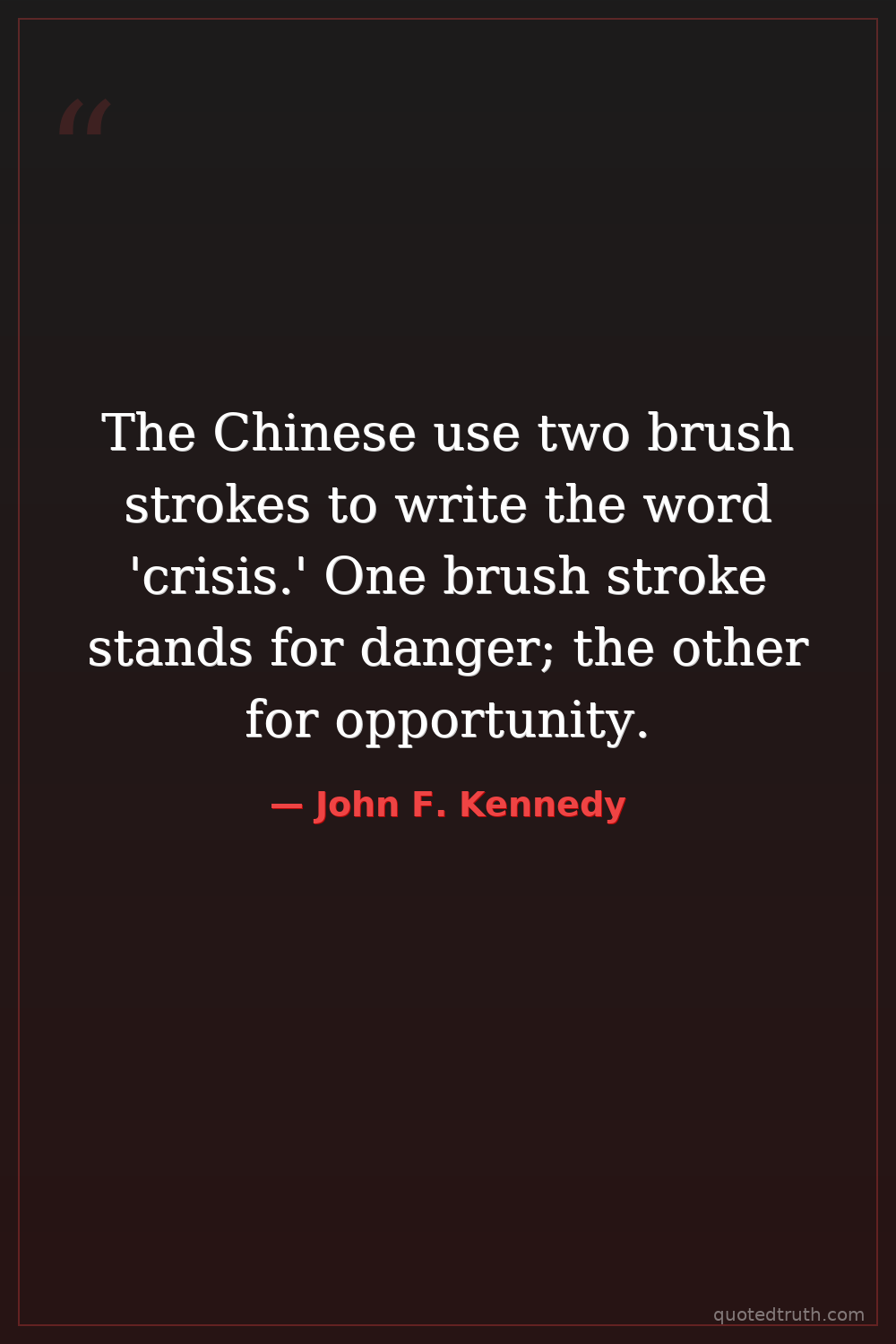 The Chinese use two brush strokes to write the word 'crisis.' One brush stroke stands for danger; the other for opportunity.