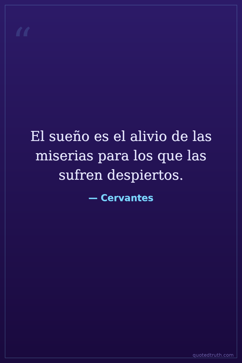 El sueño es el alivio de las miserias para los que las sufren despiertos.