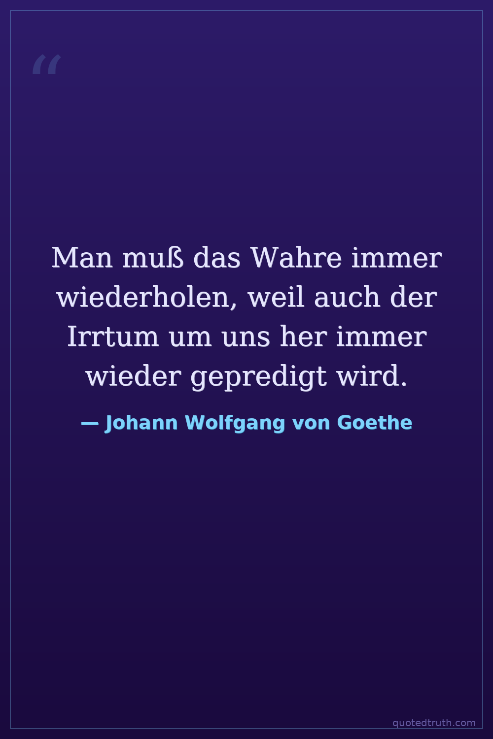 Man muß das Wahre immer wiederholen, weil auch der Irrtum um uns her immer wieder gepredigt wird.