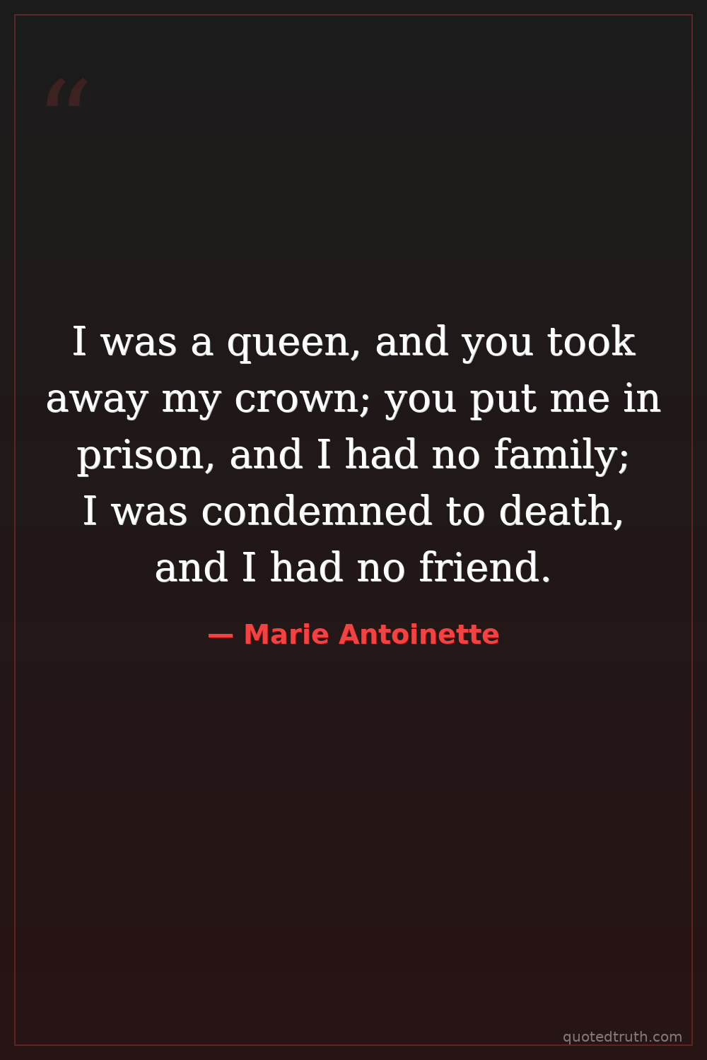 I was a queen, and you took away my crown; you put me in prison, and I had no family; I was condemned to death, and I had no friend.