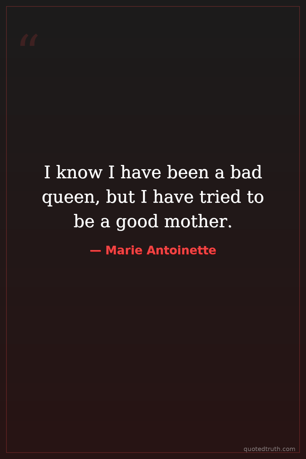I know I have been a bad queen, but I have tried to be a good mother.