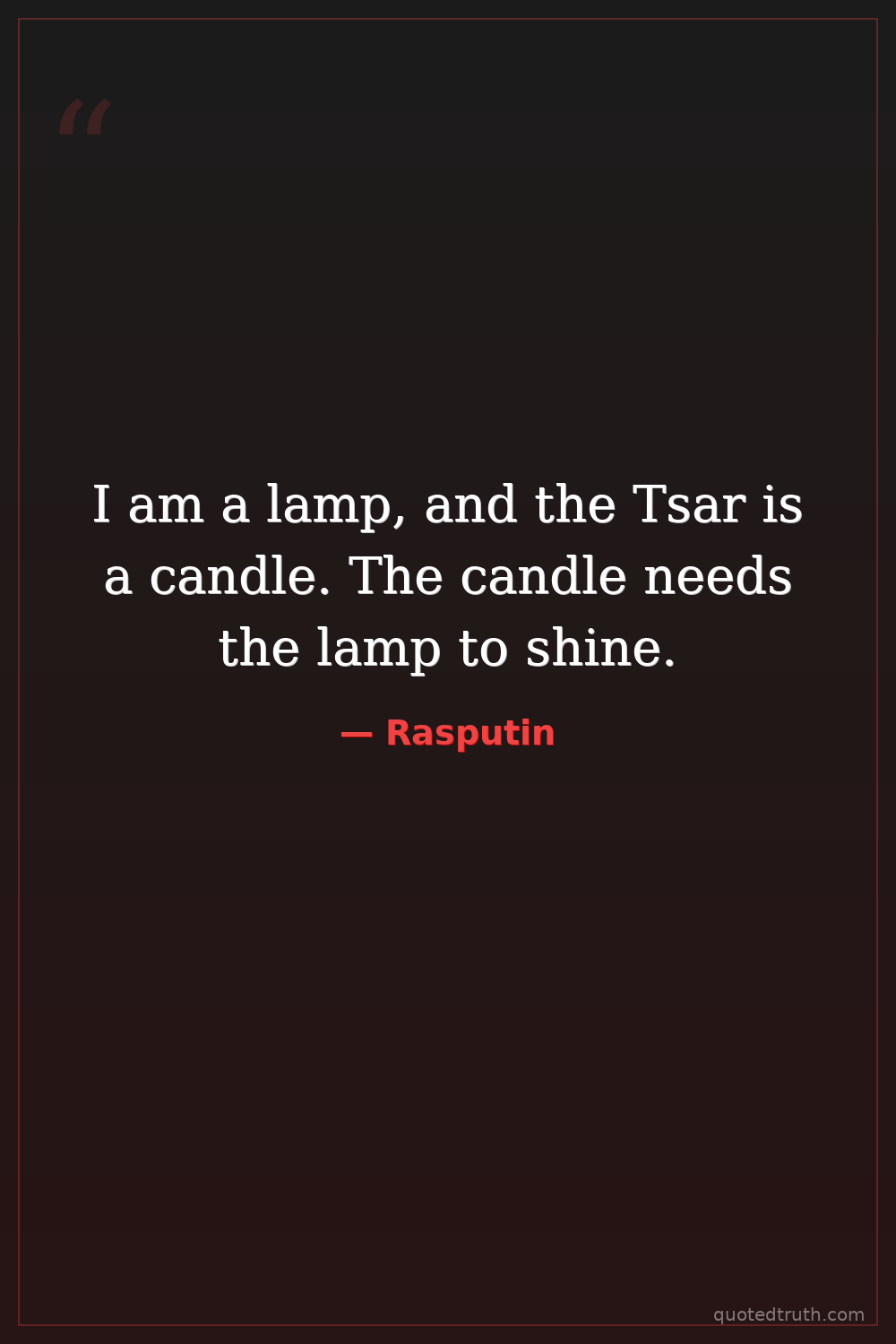 I am a lamp, and the Tsar is a candle. The candle needs the lamp to shine.