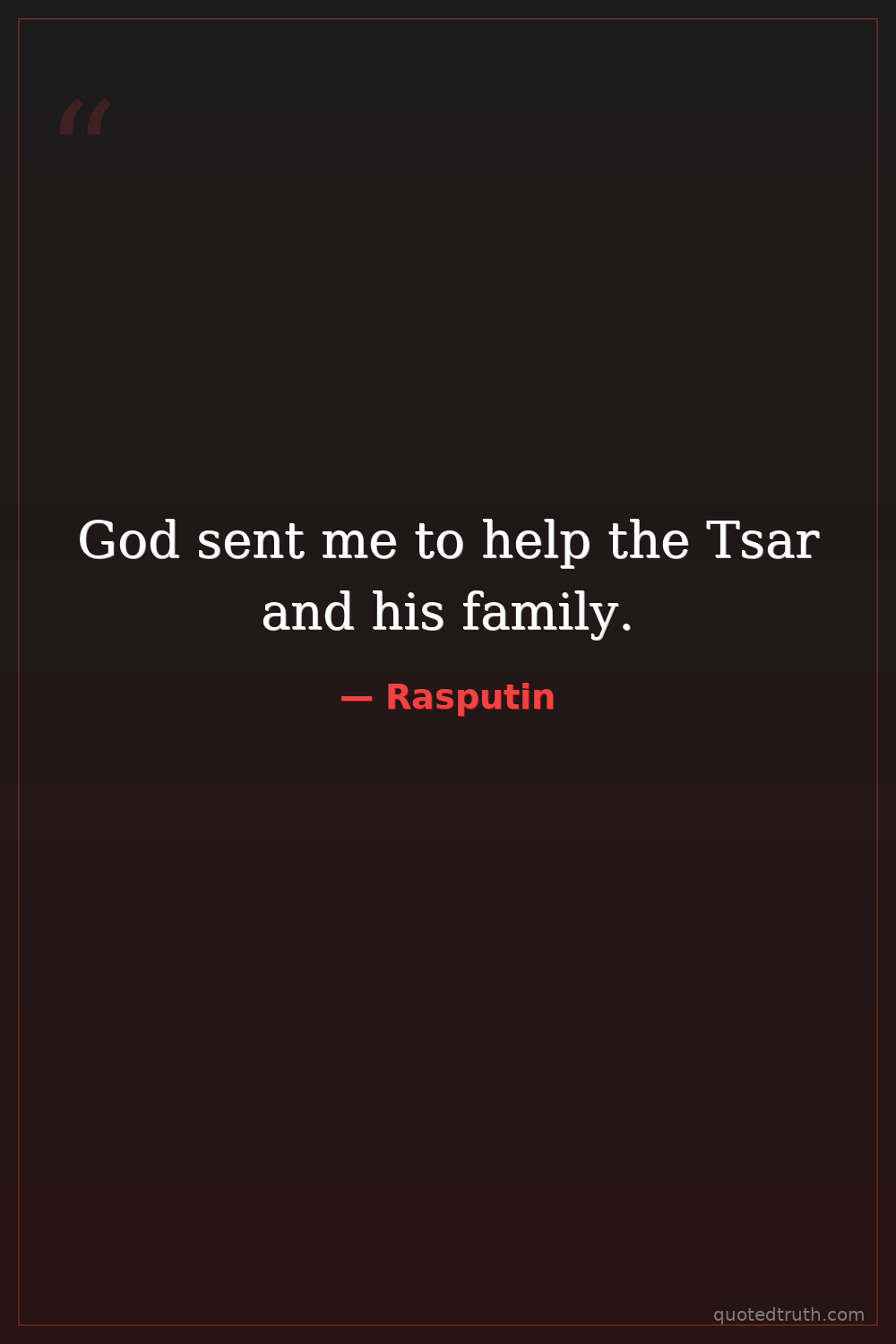 God sent me to help the Tsar and his family.