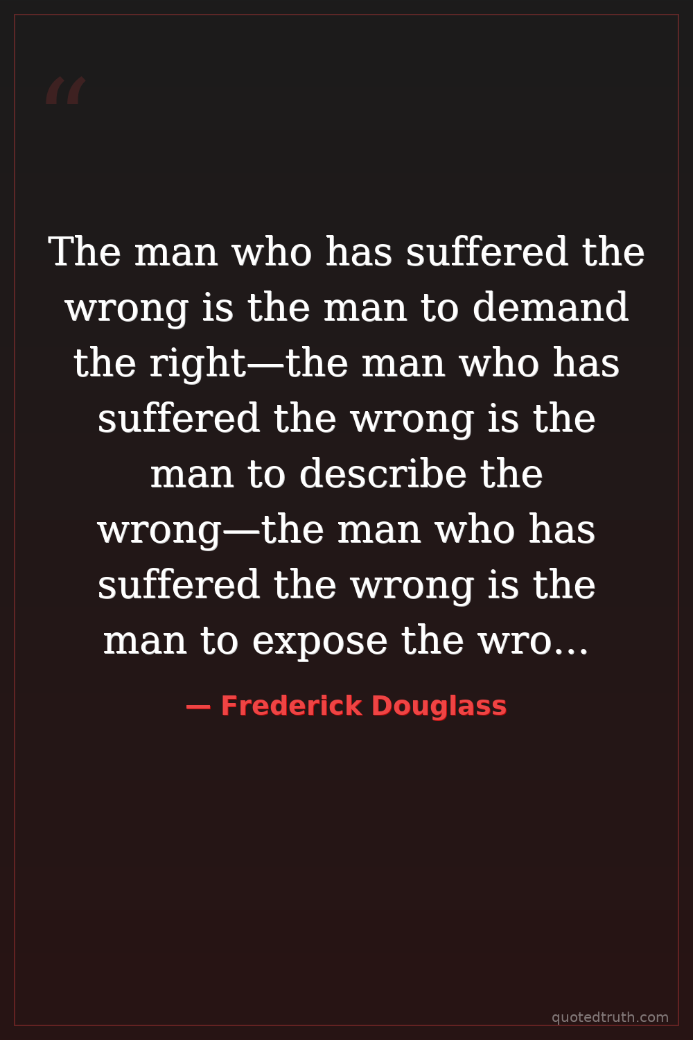 The man who has suffered the wrong is the man to demand the right—the man who has suffered the wrong is the man to describe the wrong—the man who has suffered the wrong is the man to expose the wrong—and it shall be so with me.