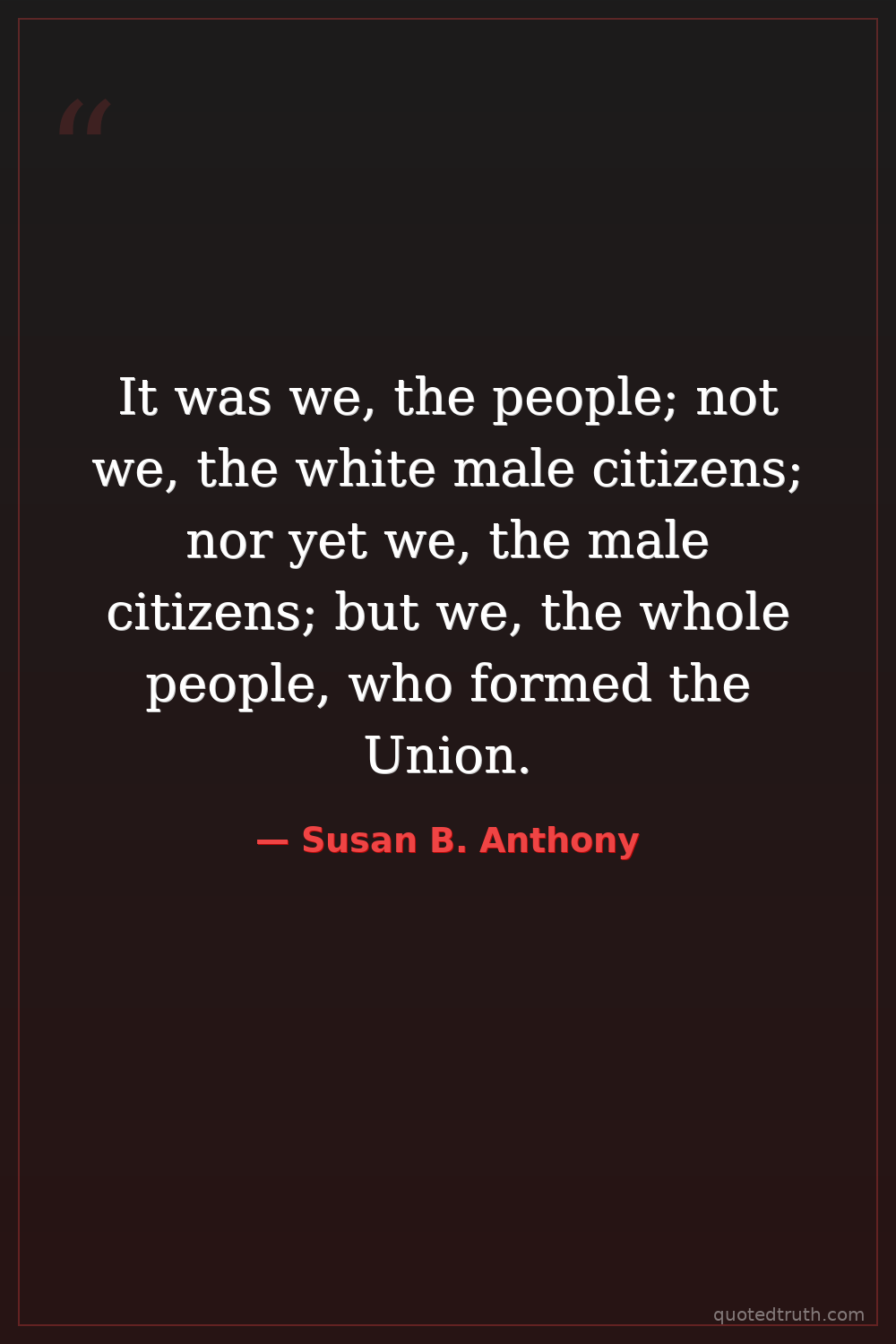 It was we, the people; not we, the white male citizens; nor yet we, the male citizens; but we, the whole people, who formed the Union.