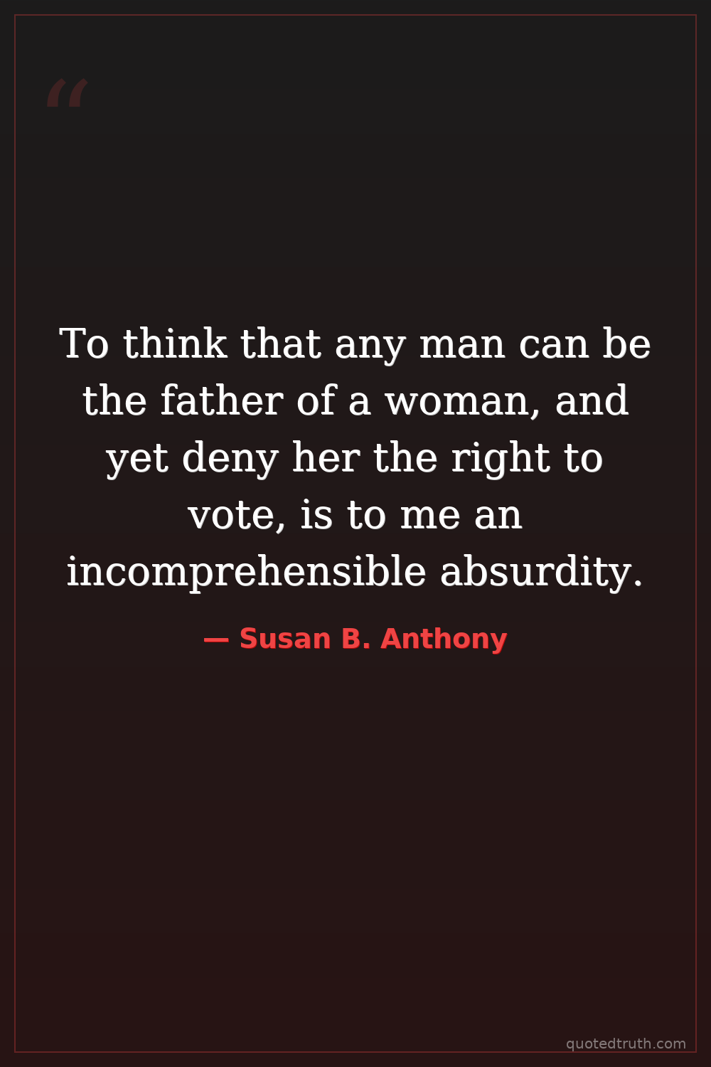 To think that any man can be the father of a woman, and yet deny her the right to vote, is to me an incomprehensible absurdity.