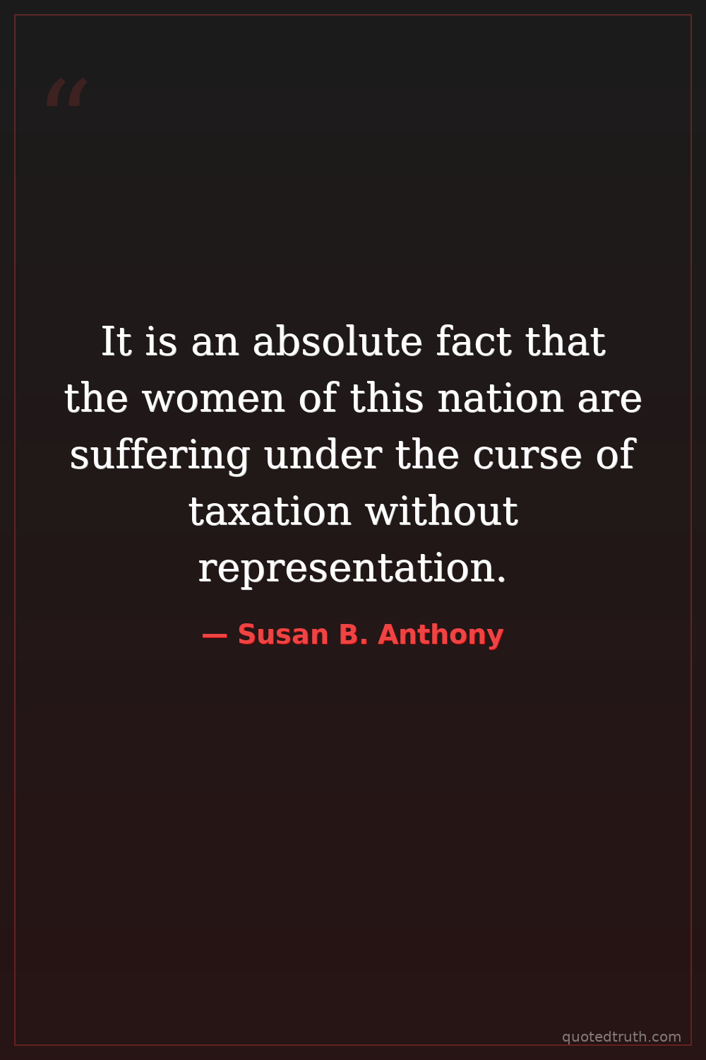 It is an absolute fact that the women of this nation are suffering under the curse of taxation without representation.