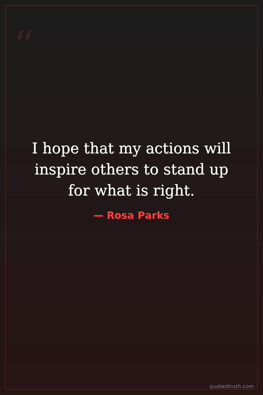 I hope that my actions will inspire others to stand up for what is right.