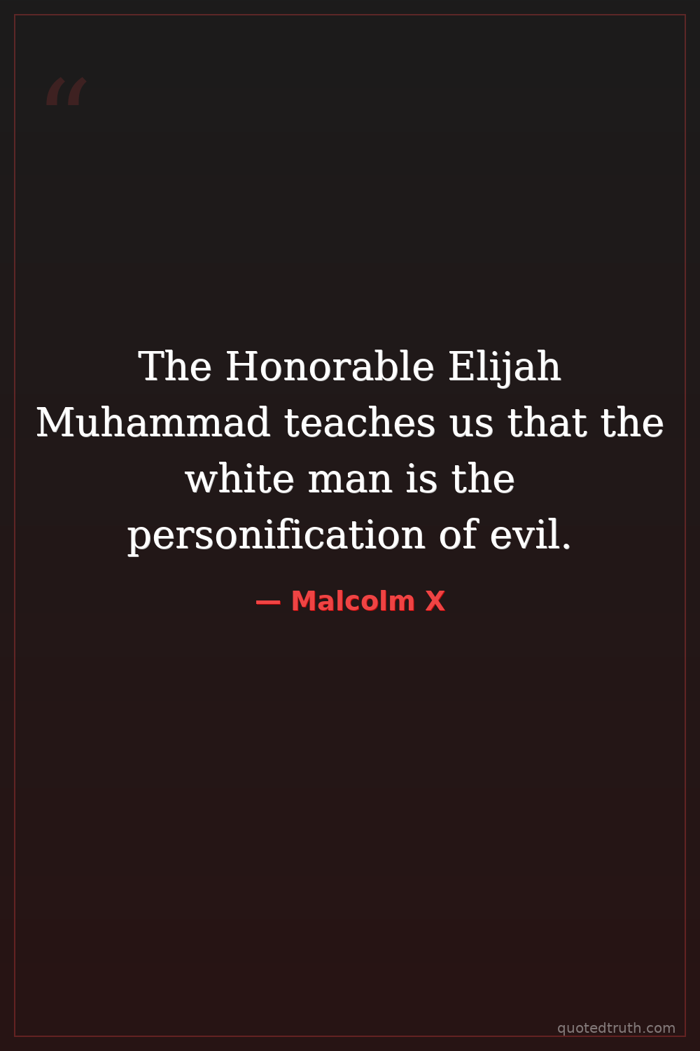 The Honorable Elijah Muhammad teaches us that the white man is the personification of evil.