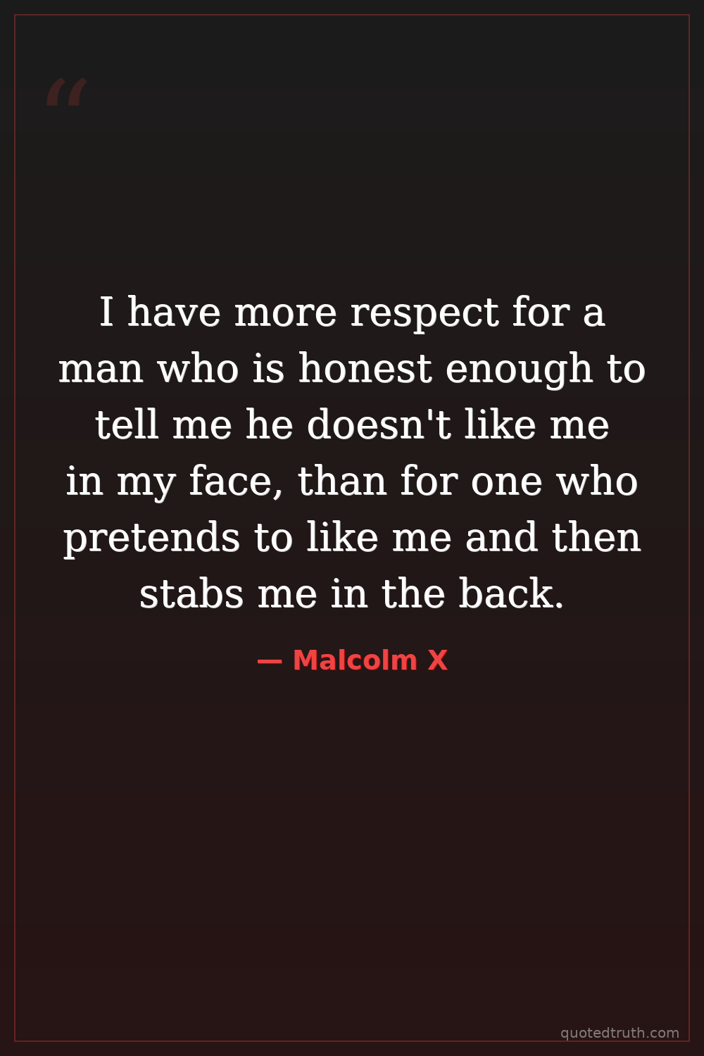 I have more respect for a man who is honest enough to tell me he doesn't like me in my face, than for one who pretends to like me and then stabs me in the back.