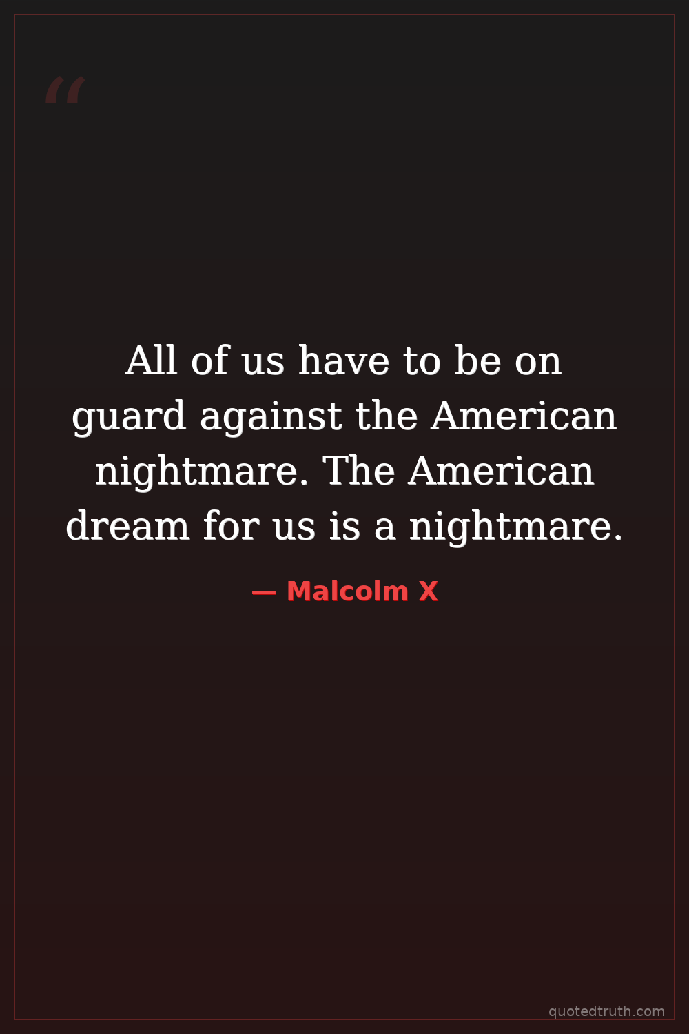 All of us have to be on guard against the American nightmare. The American dream for us is a nightmare.
